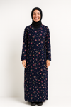 Çiçek Desenli Kruvaze Namaz Elbisesi – %100 Viskon, Yandan Bağlamalı 36-46 Beden