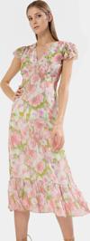 Ersefa Çiçek Desenli Polyester Şifon Elbise A Kesim Midi Boy Rahat Ve Şık Uzun Ömürlü Özenle Seçilmiş