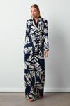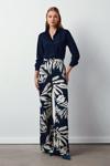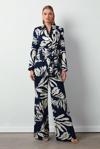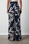 Yüksek bel, yan fermuarlı, salaş model, çiçek desenli saten pantolon.