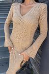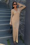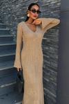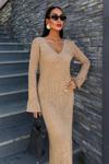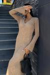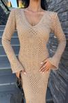 Zarif çiçek detayları ile süslenmiş, her mevsim rahatlıkla tercih edebileceğiniz uzun triko elbise.