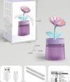 Çiçek tasarımlı nemlendirici, estetik görünümü ve şık çiçek şekliyle hem dekoratif hem de işlevsel bir üründür. Ortamın havasını nemlendirerek kuru havayı önler ve sağlıklı bir atmosfer oluşturur. USB bağlantısıyla çalışan bu ürün, enerji tasarrufu sağlar ve kullanımı oldukça kolaydır. Kompakt ve hafif tasarımı sayesinde her yerde rahatlıkla taşınıp kullanılabilir. Dayanıklı plastik malzemeden üretilmiştir ve yumuşak LED aydınlatma özelliği bulunan modelleriyle gece lambası olarak da kullanılabilir. Mor tabanı ve pastel tonlardaki çiçek deseniyle çocuk odaları, ofis masaları ve yatak odaları için mükemmel bir dekoratif aksesuar ve nemlendirici çözüm sunar.