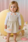Kız Çocuk Çiçek Nakışlı Elbise Takımı