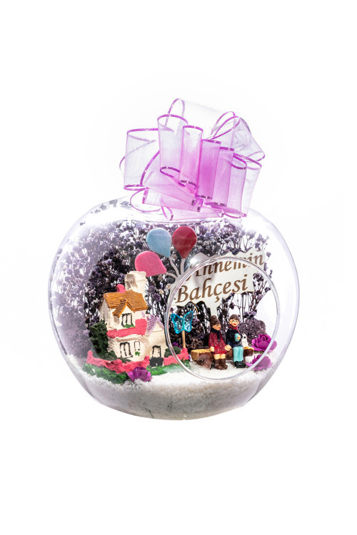 beyaz kum, kurutulmuş bitkiler, şoklanmış yosunlar, yapay minigüller, bir adet ahşap annemin bahçesi yazılı balonlu tabela, bir adet şeffafkelebek, bir adet iki katlı taş ev ve bankta yan yana sohbet eden çifti simgeleyenobjeler kullanılarak tamamlanmıştır. Ev ve ofis ortamlarının tamamındasergilenebilir teraryumun içinde, kurutulmuş bitkiler bulunduğundan hava almasıönemlidir. Açık olan kısmının kapatılmaması veya büfe vb. kapalı alanlarakonulmaması gereklidir. Özellikle her ortamda yıllarca, zevkle izlenebileceközel bir teraryumdur. Yaklaşık Ölçüleri