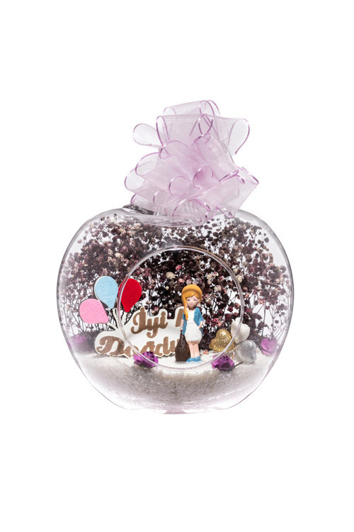 cicekbi Teraryum İyi ki Doğdun Tatlım - Mor - Sarışın Mavi Elbiseli