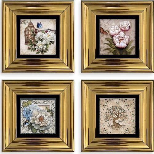 Ct Stones Çiçekler 4 Lü Set Çerçeveli Taş Tablo