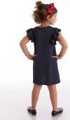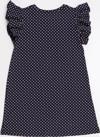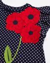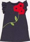 Penye pamuklu, puantiyeli kumaştan, kolları fırfırlı elbise. Elbisenin üzerine 3 boyutlu çiçekler işlenmiştir.