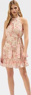 PayBuy Çiçekli Desenli Halter Yaka Mini Elbise Hafif Polyester Kumaş Yazlık Günlük Şık Görünüm