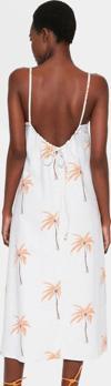 Yaz aylarının vazgeçilmez parçası olacak bu beyaz çiçekli elbise, şıklığı ve rahatlığı bir araya getiriyor. Keten görünümlü viskoz kumaştan üretilen elbise, hem doğal hem de modern bir görünüm sunuyor. Kolsuz ve düz kesim tasarımıyla her vücut tipine uyum sağlarken, çiçek desenleri ile de tarzınızı yansıtabilirsiniz. Arka kısmında bulunan bağcık detayı ile kişiselleştirilebilir bir stil oluştururken, midi boyu ile her ortamda rahatlıkla kullanılabilir.