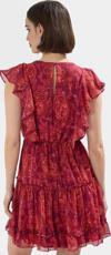 Şifon kumaşın hafif ve nefes alabilen yapısı, yaz sıcağında serin kalmanızı sağlar. Dokuması yumuşak ve teninize naziktir. Astarlı tasarımı sayesinde rahatlık ve güven sunar. Belden açılan fırfır detayı, elbiseye hareketlilik ve feminen bir hava katar. Mini boyu ve skater kalıbı ile vücut hatlarınızı zarifçe ortaya koyar. Kısa ve standart kolları, her ortamda rahat hareket etmenizi sağlar.