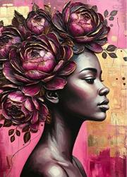 Çiçekli Kadın Portresi Dekoratif ahşap Tablo 25cmX 35cm