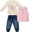 Necix's ÇİÇEKLİ KAPİTONE KAPÜŞONLU YELEK DENIM PANTOLON ÜÇLÜ ALT ÜST TAKIM - NEC243272-Pembe-4 - 5 Yaş Pembe