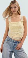 Yazın sıcağında serin ve şık kalmak mı istiyorsunuz? O zaman bu sarı çiçekli örme tül bluz tam size göre! Hafif ve nefes alabilen yapısıyla gün boyu konfor sunarken, zarif tasarımıyla da stilinizi tamamlayacak. Fitted kalıbıyla vücudunuza mükemmel oturur, hareket özgürlüğünüzü kısıtlamadan şık görünmenizi sağlar. Kare yakası ve kolsuz tasarımıyla sıcak havalarda ideal olan bu bluz, günlük kombinleriniz için mükemmel bir seçenektir. Pamuklu astarı ile cildinize yumuşak bir dokunuş sağlar ve gün boyu konforlu hissetmenizi garanti eder. Rahatlığı ve şıklığı bir araya getiren bu bluz ile stilinizi taçlandırın! Sıcak yaz günlerinde, şık ve havadar bir görünüm için idealdir. Günlük kullanım için mükemmel olan bu bluz, rahatlığı ve tarzı bir araya getiriyor. İster kot pantolonlarla, ister eteklerle kombinleyin, her durumda göz alıcı olacaksınız.