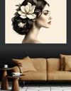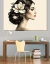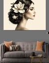 Çiçekli Siyah Beyaz Portre Dekoratif Kanvas - Mdf Ahşap Tablo