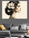 Tablomega Çiçekli Siyah Beyaz Portre Dekoratif Kanvas - Mdf Ahşap Tablo