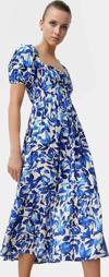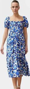 100% viskoz kumaşın yumuşak ve nefes alabilir yapısı, yaz sıcağında bile konforlu hissetmenizi sağlar. Gipeli detaylar elbisenin şıklığını tamamlarken, skater kalıp vücut hatlarınıza mükemmel bir uyum sağlar. Kısa balon kollar ve kare yaka, hem modern hem de feminen bir tarz yaratırken, mavi çiçekli desen ise yazın canlılığını yansıtır. Elbisenin midi boyu ile her türlü ayakkabıyla mükemmel bir kombin oluşturabilirsiniz.