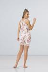 Kolları dantelli, çiçek desenli pijama takımı. Rahat kalıp.
