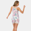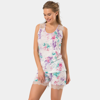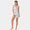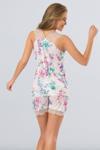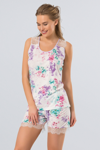 Kolları dantelli, çiçek desenli pijama takımı. Rahat kalıp.