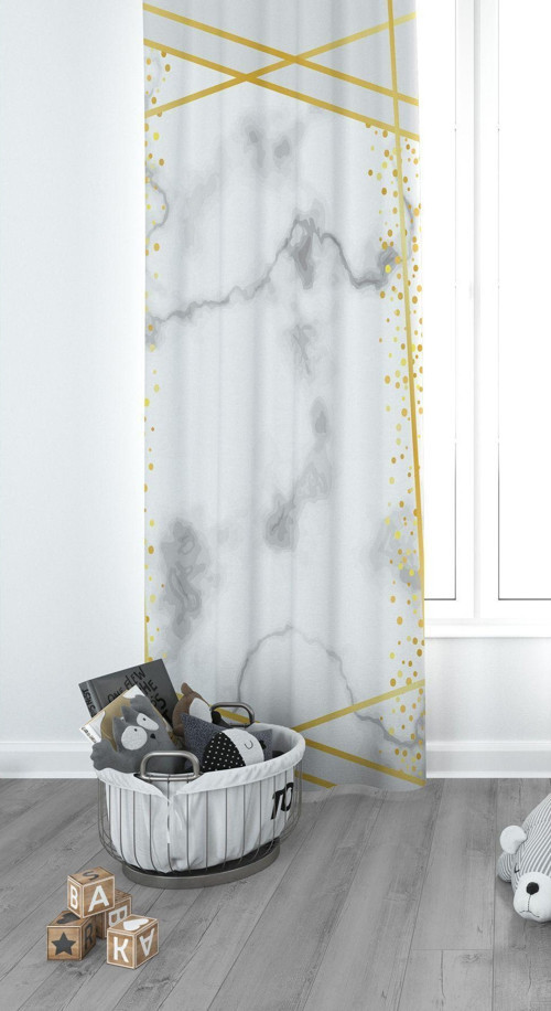 Cici Eko Çizgili Mermer Görünümlü Çocuk Odası Perdesi Fon Perde