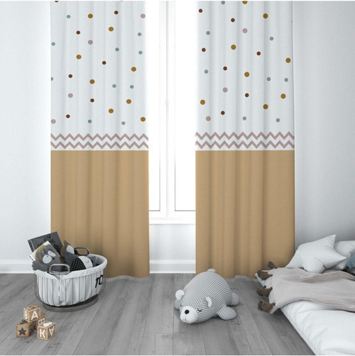 1 Kanat Çocuk Odası Perdesi Fon Perde Zikzak Puantiyeli Desen