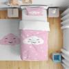 Çocuk Bebek Nevresim Takımı Pembe Zemin Yıldızlı Gülen Bulut