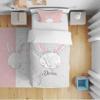 Cici Odam Çocuk Yatak Örtüsü Hediye Yastık Kılıfı Arkası Dönük Fil ve Tavşan Yıldızlı - Image 1
