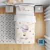 Çocuk Yatak Örtüsü Hediye Yastık Kılıfı Serpme Yıldızlı Pembe Uçan Balon