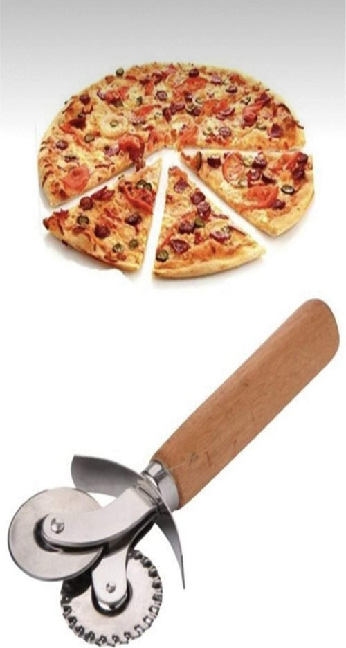 | Çift Başlıklı Ahşap Saplı Pizza Kesici Hamur Kesici Çİft Başlı Metal Pizza Kesici ve Hamur Ruleti Pizza , Tart vb lezzet hazırlarken el aletlerinden pizza kesici ve hamur ruleti adı verilen, iki küçük el aletini kullanırsınız. Bu el aletleri, mutfaklarımızda olmazlarsa olmazlarındandır. Hamur kesici veya hamur ruletı normal bıçaklardan daha seri ve hatasız keserler. 1.Pizza Kesici: Ahşap yuva arasına yataklanmış, kesici ağızlı, döner metal bir disk. Alet sapından tutulduğu vakit, el kaymasını önlemek için muhafazası vardır. Asıl görevi pizza kesmek olsa da, çeşitli börek, gözleme, yufka kesimleri için oldukça kullanışlıdır. 2.Hamur Ruleti: Yufkalarınızı kesme işlemlerinde hiç zorlanmazsınız. Bu hamur ruleti, hamur yufkayı tek hareketle keser ve birleştirir. Özellikle, yufkaların birbiri üzerine katlanarak yapılan böreklerde çok başarılıdır. Örneğin : Çiy börek uçlarının düzgün şekil için kesimi ve birleştirilmesi. Ayrıca, çift yufka usülü kullanılarak yapılan mantıların birleştirilmesi gibi. Biz her iki ürünü birleştirdik tek alete sığdırdık. Ahşap Yuvaya hamur kesici ve hamur ruletı yerleştirerek tek aletle 2 ayrı aletin yaptığı işi yapabileceksiniz Mutfağınızda kolaylıklar dileği ile. Paket İçeriği : 1 Adet Çİft Başlı Metal Pizza Kesici ve Hamur Ruleti |