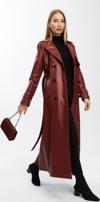 Trençkot, yumuşak ve dayanıklı deri malzeme kullanılarak üretilmiştir