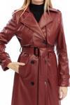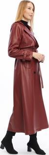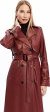 Jamila Çift Cepkenli Uzun Boy Deri Trençkot