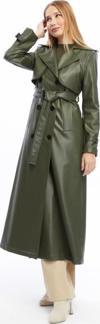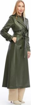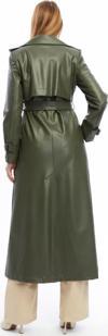 Jamila Çift Cepkenli Uzun Boy Deri Trençkot