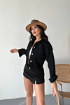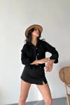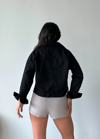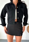 İntive lingerie-innocent&attractive Çift cepli kol katlamalı süper taş enzim yıkamalı crop kot ceket siyah d2000