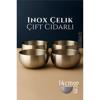 Sade ve teknik sunumuyla öne çıkan bu INOX çelik kase seti, çift cidarlı yapısıyla sıcak-soğuk içeriklerde üstün performans sunar.