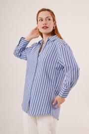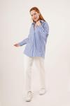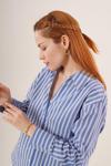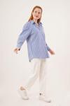 Çift Çizgi Geçişli Düğmeli Mavi Gömlek