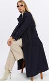 Lela Oversize Fit Kruvaze Yaka Kuşaklı Düğmeli Bayan Trençkot 6839609 LACİVERT - Image 1