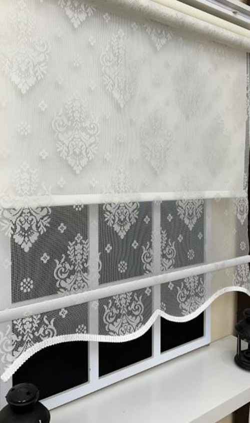 Çift Mekanizmalı Ekru Tül Perde ve Ekru Stor Perde ST 121
