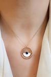 Cift taraflı kullanılabilir hareketli lacivert zirkon taş detaylı mineli plaka kolye