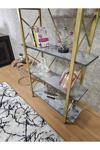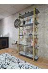 Çıkıntılı Gold Boyalı Kitaplık - 5 Raflı Suntalem Lüks Kitaplık Marmol