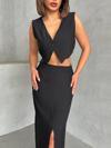 Örme Plaj Takımı Vücuda Oturan V Yaka Kolsuz Uzun Etek Seçkin Malzeme Yüksek Kalite - Image 1