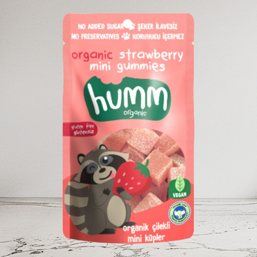 Organik elma suyu, organik çilek püresi (%31,9), su, organik pirinç unu, organik mısır nişastası, asitlik düzenleyici (sitrik asit). Alerjen uyarısı: Glutensiz. Eser miktarda sert kabuklu meyveler, susam ve soya içerebilir. Besin değerleri 100 g: Enerji (kJ/kcal): 1692/404, yağ (g): 4,9, doymuş yağ (g): 2,3, karbonhidrat (g): 90, şekerler (g): 53, lif (g): 0,7, protein (g): 0,2, tuz (g): 0,1. Menşei Yerli Kaynak ülke Türkiye Saklama koşulu 22-24 C de saklanmalı