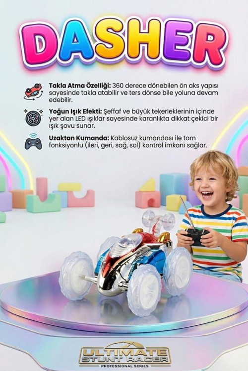 Çocuklarınızın Yeni Favorisi: Çılgın Dasher ile Sınır Tanımayan Eğlence!Hızı, adrenalini ve eğlenceyi bir arada sunan Çılgın Dasher Uzaktan Kumandalı Araba, çocuklarınızın oyun saatlerini unutulmaz kılacak. Sıradan oyuncak arabaların aksine, bu özel tasarım araç çılgın hareketleriyle herkesi kendine hayran bırakıyor!