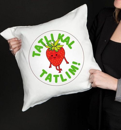 Çılgıntrend Tatlılık Tatlım Yazılı Çilek Tasarımlı Dekoratif Yastık Kılıfı – Eğlenceli Tasarım, İçi Boş