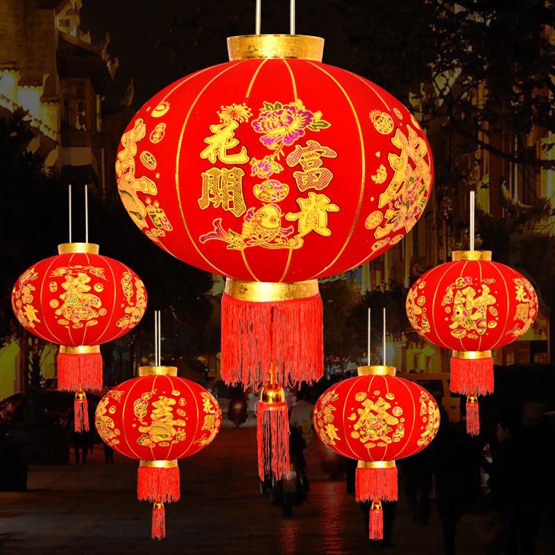 Dekoratif Çin Feneri Festival Parti Düğün Feneri ve Abajur Kırmızı Kadife Yuvarlak 60 cm