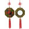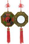 Çin Şans düğümlü, enerji arttıran kırmızı renkli, Bagua ayna. Çince karakterler ve hayvan temaları ile
