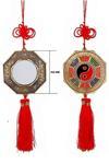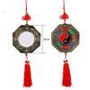 Çin Şans düğümlü, enerji arttıran kırmızı renkli, Bagua ayna. Çince karakterler ve hayvan temaları ile