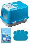 Çınar Dizayn Büyük Xxl Kapalı Tuvalet A Kalite Mavi 65X50X45 +Vancat 10 Kg Kedi Kumu+ Kedi Tuvalet Önü Paspası