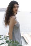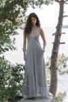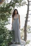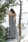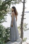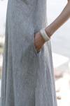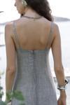 Volanlı, ayarlanabilir askılı, arka ortası gizli fermuarlı, keten karışımlı maxi elbise.