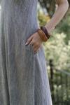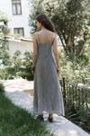 Volanlı, ayarlanabilir askılı, arka ortası gizli fermuarlı, keten karışımlı maxi elbise.