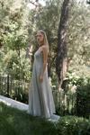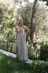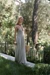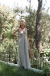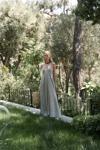 Volanlı, ayarlanabilir askılı, arka ortası gizli fermuarlı, keten karışımlı maxi elbise.