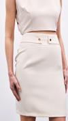 Yüksek bel, arka fermuarlı, bel süs çıtçıt detaylı mini etek.