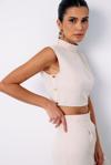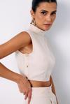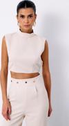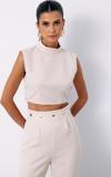 Dik yaka, kolsuz, yanlar gold çıtçıtlı kapama, düz crop bluz.